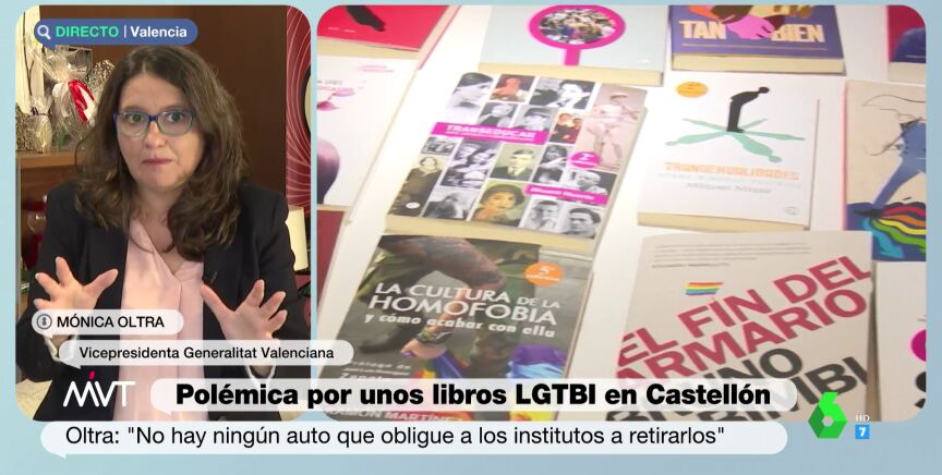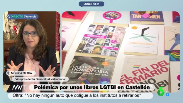 Mónica Oltra ha respondido en Más Vale Tarde a la polémica de los libros sobre sexualidad e igualdad LGTBI que se han repartido en 12 centros educativos de Castellón. Se trata de 32 libros que un juez ha ordenado retirar como medida cautelarísima después de que la Fundación Abogados Cristianos lo denunciara.