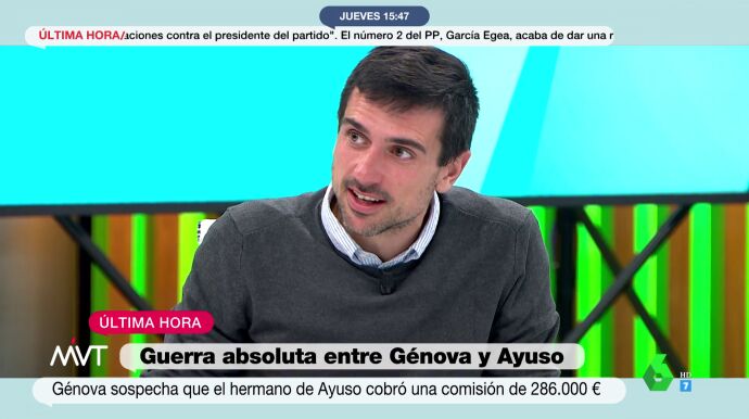 No obstante, y aunque insiste en que "jurídicamente" no sabe si "les van a millar", Espinar defiende que "éticamente es tremebundo que Isabel Díaz Ayuso, en mitad de la pandemia, esté adjudicando un contrato a su hermano, que se dedicaba al negocio de las bombillas".