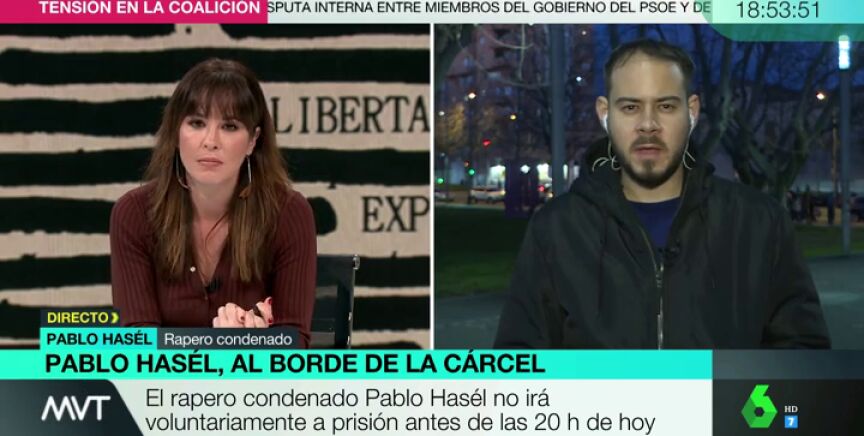 Pablo Hasél ha rechazado ingresar voluntariamente en prisión tras ser condenado a cumplir nueve meses de cárcel por enaltecimiento del terrorismo e injurias a la corona. "Sería una humillación. Vendrán a buscarme en cualquier momento. De momento no se ha frenado, aunque ha habido mucha solidaridad, movilizaciones muy concurridas –muchas de ellas reprimidas o prohibidas por el Gobierno–". Cree el rapero que "están nerviosos ante el escándalo que se está generando por este grave ataque contra nuestras libertades".