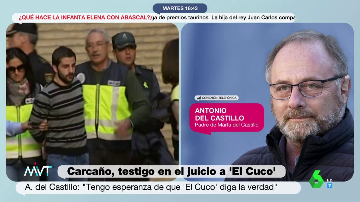 Antonio del Castillo ha lanzado un mensaje a los acusados en el asesinato de su hija, Marta del Castillo, desaparecida desde enero de 2009. "Si mi hija aparece, yo retiro todo lo que haya en los tribunales", ha aseverado del Castillo.