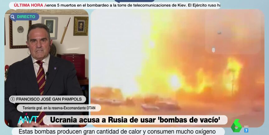 Ucrania ha acusado a Rusia de utilizar bombas de vacíoen sus ataques contra el país, un tipo de arma prohibida por la Convención de Ginebra. Pero, ¿dejan suficientes pruebas para demostrar su empleo? El teniente general Francisco José Gan Pampols lo confirma en Más Vale Tarde, donde detalla cuáles son los efectos de este tipo de bomba, también llamada termobárica.
