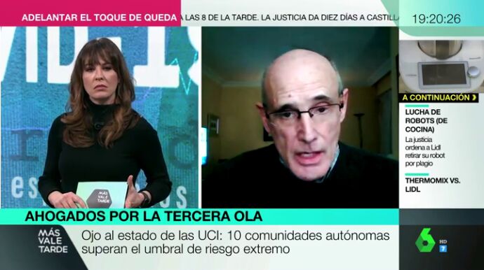 "Es evidente que tenemos que ya prepararnos para un escenario cada vez peor", ha advertido el experto en Más Vale Tarde, donde ha apostado por adoptar medidas más restrictivas frente o incluso volver a un confinamiento estricto.