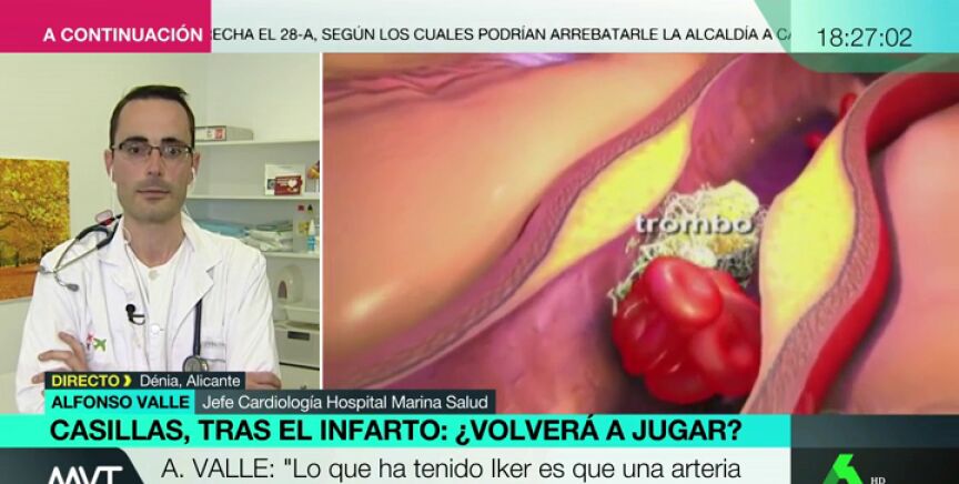 Alfonso Valle es el jefe de Cardiología del Hospital Marina Salud, y explica que cuando se sufre un infarto de miocardio es muy importante actuar rápido, pedir ayuda y acudir al hospital para que se realice un cateterismo urgente.