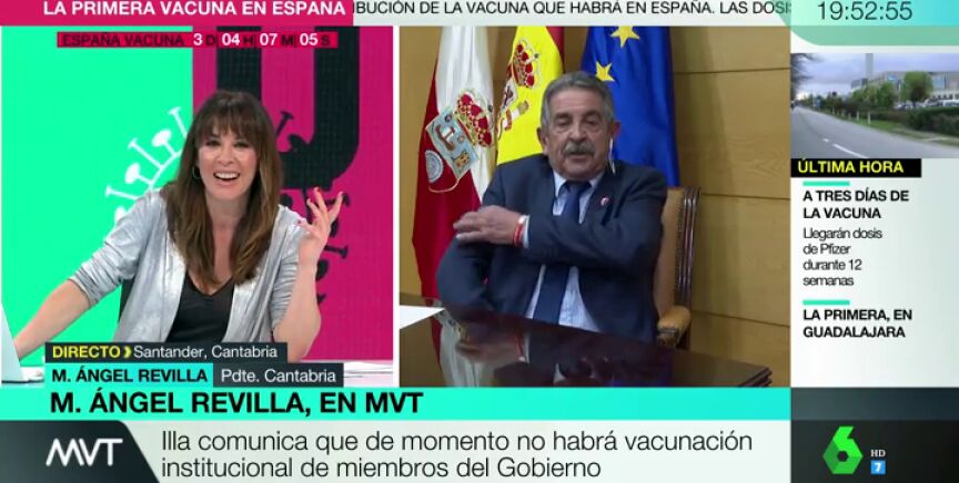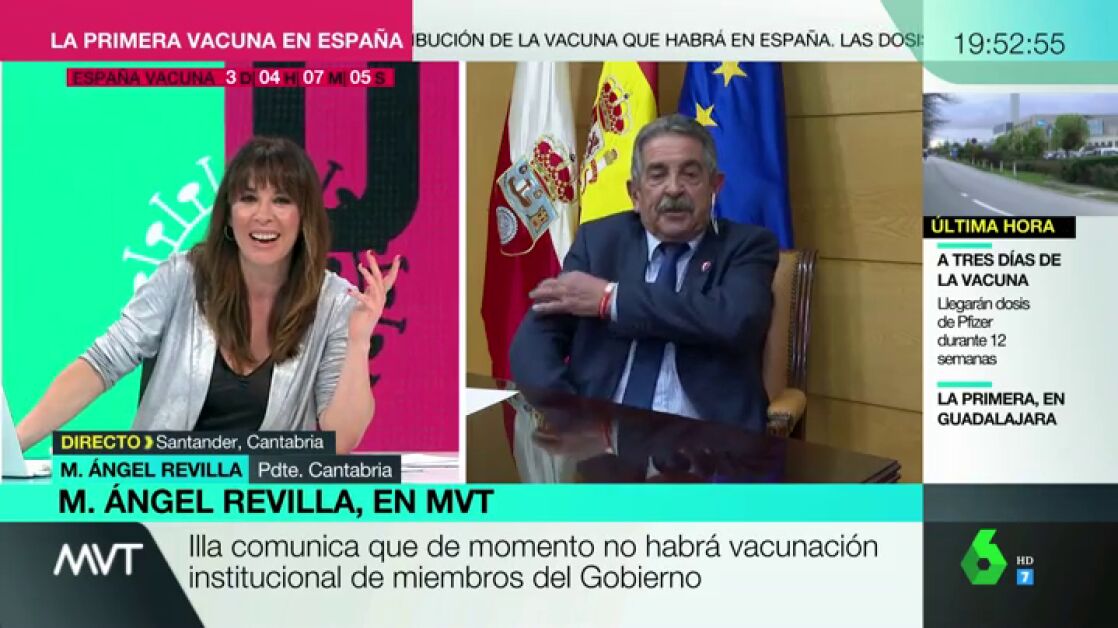 Revilla sorprende a Mamen Mendizábal afirmando que si le dejasen se pondría la vacuna en el plató de MVT