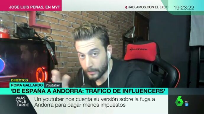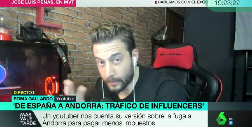 "Esto no es una crítica a la sociedad, es una crítica al Estado". De esta forma ha arrancado el youtuber Roma Gallardo su intervención en Más Vale Tarde para analizar la marcha de 'El Rubius' a Andorra: "El problema no es que se marchen dos para pagar menos. El problema es que en España pasa algo cuando la gente que está triunfando y que le está yendo bien se va".