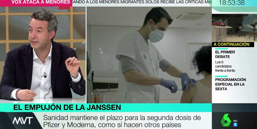 ¿Quiénes conforman este grupo? "Los inmunodeprimidos, pacientes EPOC, pacientes con enfermedad cardiovascular crónica, los diabéticos... a toda esa gente hay que vacunarla antes de junio", ha respondido Carballo, que asegura que la vacuna de Janssen es perfecta para estas personas: "Con una sola dosis quedan inmunizados, y evitaríamos el tener que verles por los hospitales, algo que por desgracia seguimos viendo".