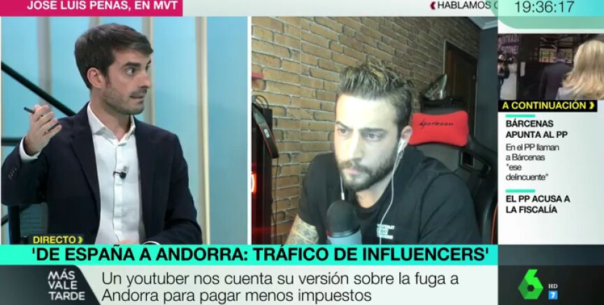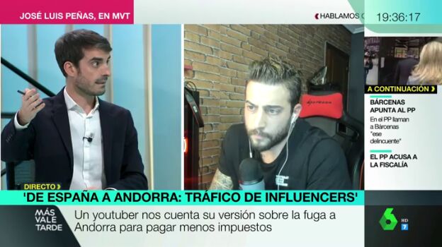 El politólogo y profesor de la Universidad Carlos III Pablo Simón y el youtuber Roma Gallardo han mantenido un tenso debate en Más Vale Tarde a colación de la marcha del streamer 'El Rubius' a Andorrapara, entre otros motivos, pagar menos impuestos. Un hecho que el creador de contenidos ha puesto en el punto de mira para criticar la forma de implementar parte de los impuestos en España y ha lamentado que no existan herramientas para cambiar leyes que no gustan en la ciudadanía.