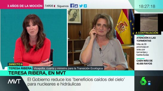 ¿Se están reformando nuestros hábitos más que el mercado eléctrico? Es la pregunta que ha realizado Mamen Mendizábal en Más Vale Tarde a la vicepresidenta cuarta y ministra de Transición Ecológica, Teresa Ribera, a razón de la nueva factura de la luz que se ha puesto en marcha este 1 de junio. "Las medidas que se han venido trabajando se incluyen en gran medida en lo que se llama 'gestión de la demanda'", ha explicado en el programa.