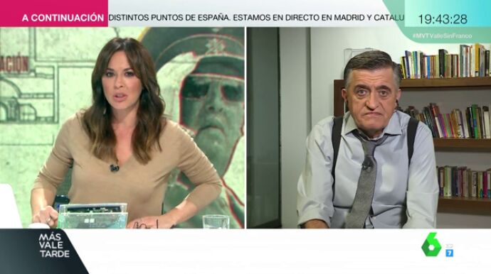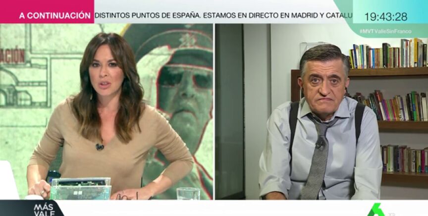 "Franco no es el pasado, está entre nosotros", ha sentenciado el presentador, que ha recordado que "Vox es una escisión del PP", y que la formación liderada por Abascal se ha referido en numerosas ocasiones a la exhumación como "profanación".