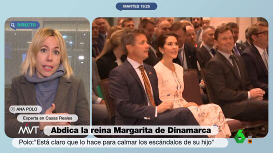 La periodista experta en casas reales Ana Polo hace un resumen en Más Vale Tarde de los escándalos que rodean al príncipe heredero de Dinamarca: "La familia real espera que los daneses se centren en lo majo que es", explica la experta.