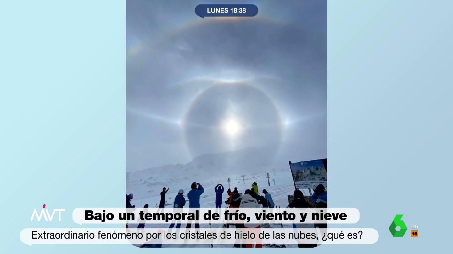 En la imagen se ven hasta ocho efectos ópticos diferentes, algo "muy difícil de encontrar y de ver". "Estoy en shock", confiesa la meteoróloga de laSexta.
