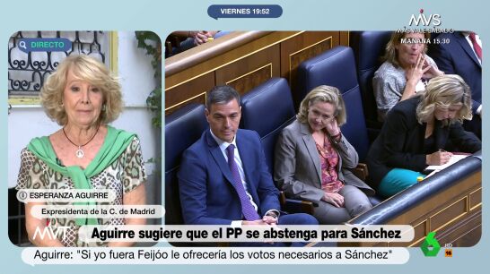 Esperanza Aguirre: "Si yo fuera Feijóo, le ofrecería los votos necesarios a Sánchez"