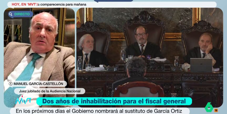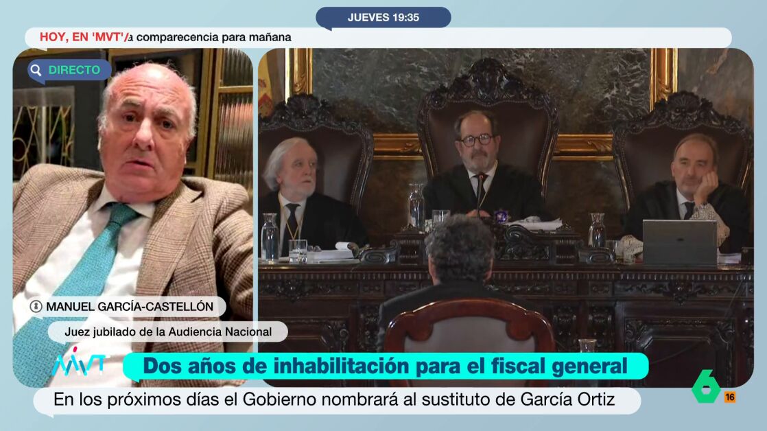 El exjuez de la Audiencia Nacional Manuel García-Castellón ha reaccionado este jueves en el programa Más Vale Tarde tras la condena del Tribunal Supremo al fiscal general del Estado, Álvaro García Ortiz, con una inhabilitación de dos años y una multa de 7.200 euros, de la que el magistrado ha asegurado que es "completamente inédita".