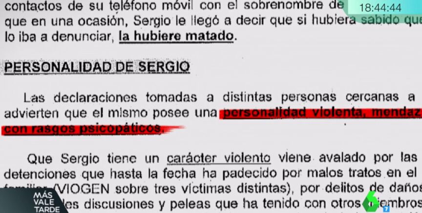 "Te llamaba la atención, te daba a entender que era una persona agresiva", aseguraba Ingrid Zarza, amiga de Dana. Y es esa personalidad violenta de Sergio, quien llegó a cavar un hoyo con 21 años por si tenía que enterrar a una ex, y su seguridad lo que llamó la atención de los investigadores.