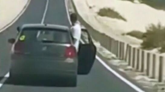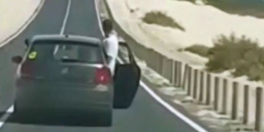 Con la puerta abierta, con un ocupante con medio cuerpo fuera y grabando con un teléfono móvil, así ha circulado un vehículo en Fuerteventura.