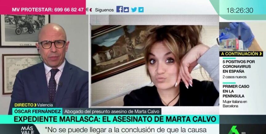 Óscar Fernández, abogado del presunto asesino de Marta Calvo: "Prefiero que aparezca el cadáver, su familia necesita un lugar donde llorarle"