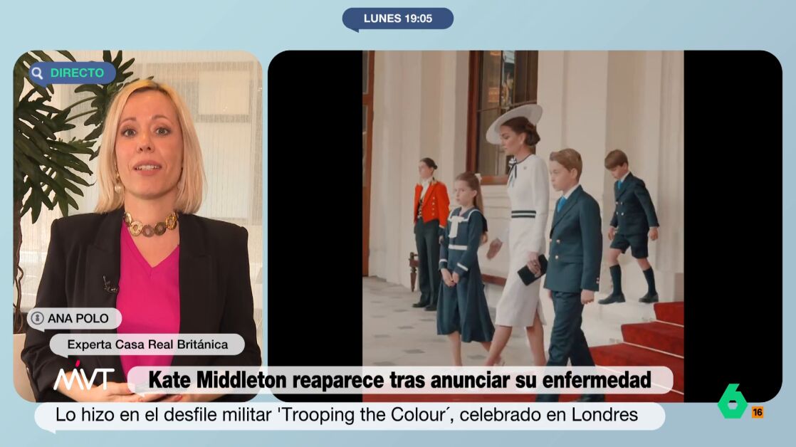 La princesa de Gales, Kate Middleton, ha aparecido este sábado por primera vez en público desde que le fue diagnosticado un cáncer, a bordo de una carroza junto a sus tres hijos en el desfile que celebra el cumpleaños oficial del rey Carlos III.