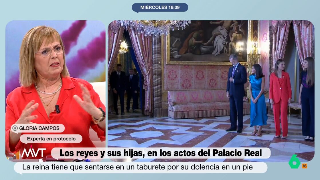 A propósito de esto, la experta en protocolo apunta que "yo he visto a la reina con la mano morada en los besamanos" y que "por eso se hacen los descansos". Además, desvela que "también llevan toallitas para las manos sudadas". Preguntada por Iñaki López sobre "cuántas sacudidas de mano son las protocolarias", Gloria comenta que "una vez".