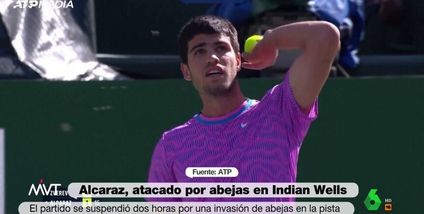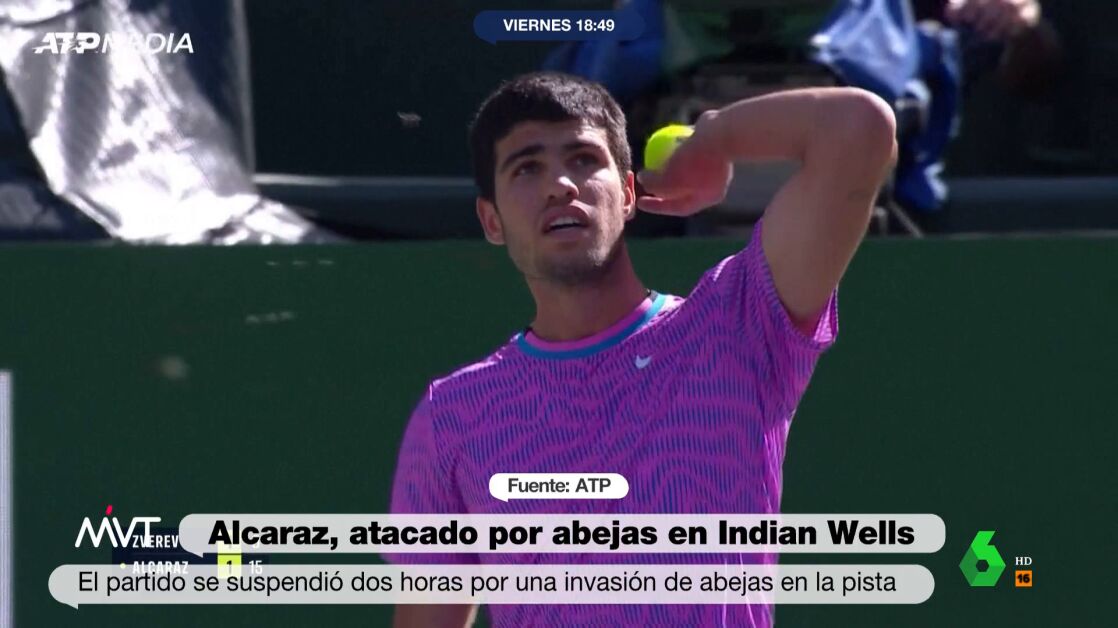 Hecho insólito el sucedido en el partido de cuartos de final de Indian Wells que enfrentaba a Carlos Alcaraz y Alexander Zverev, que se suspendió durante dos horas por la aparición de un enjambre de abejas que impidió la disputa del encuentro durante un tiempo y que picaron al tenista murciano en la frente.