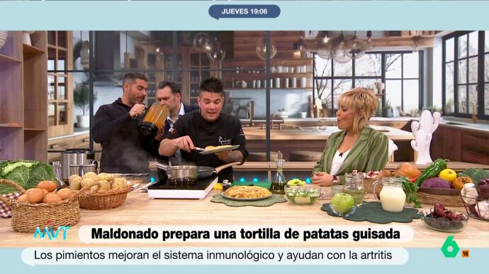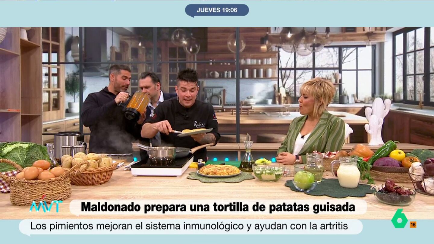 En su sección de todos los jueves, el chef con estrella Michelin, por su restaurante 'Raíces', Carlos Maldonado, da un curioso giro a la tortilla de patata precocinada y la introduce en un guiso con salsa vizcaína.