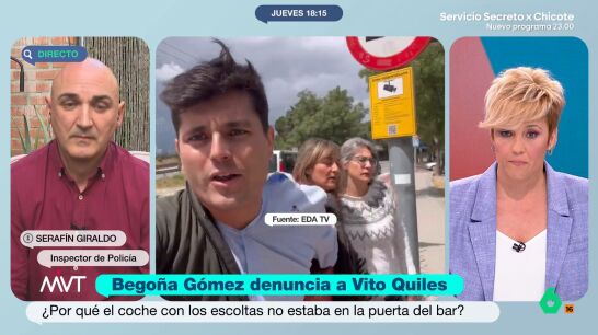 El inspector de la Policía Nacional, Serafín Giraldo, ha analizado la secuencia publicada por el agitador Vito Quiles en la que aborda a la esposa del presidente del Gobierno, Begoña Gómez, y ha explicado algunas claves importantes de los protocolos de seguridad.