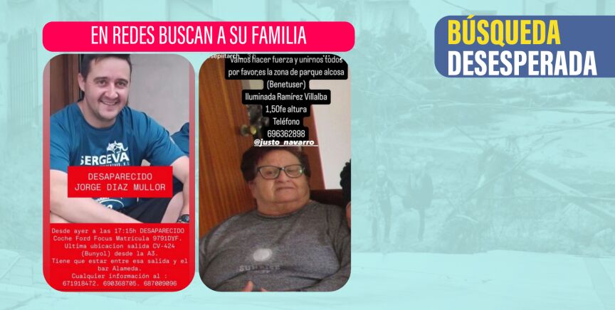 Las redes sociales se han vuelto fundamentales en las últimas horas para ayudar a los familiares en su incesante búsqueda. Estos son algunos de los desaparecidos que se buscan en Valencia.
