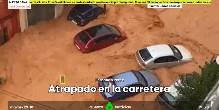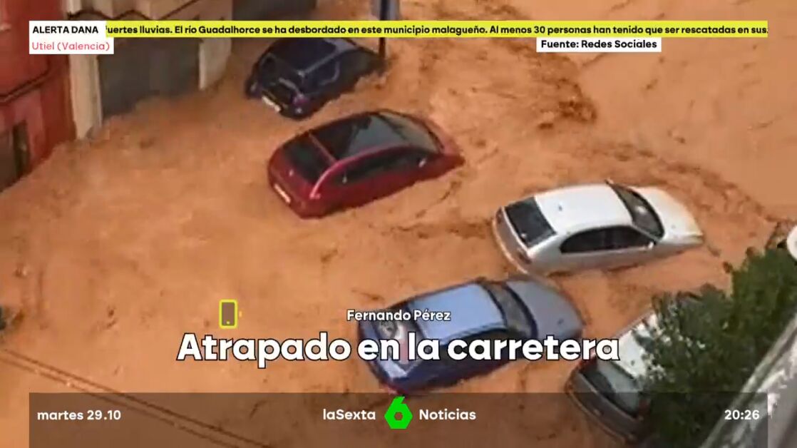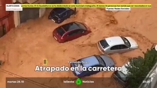 Más Vale Tarde charla con Fernando, un hombre que lleva, desde las 14:00 h, atrapado en su coche. Fernando Pérez está en la carretera A3, a 30 kilómetros de Utiel. "Llevamos desde las dos de la tarde sin comer, sin beber, sin explicaciones", explica. Como indica, los servicios de emergencia les han permitido reanudar la marcha pero desviándose por la carretera Nacional 3. Fernando transmite además los nervios que ha vivido por la inquietud de estar, durante tantas horas, "sin saber".
