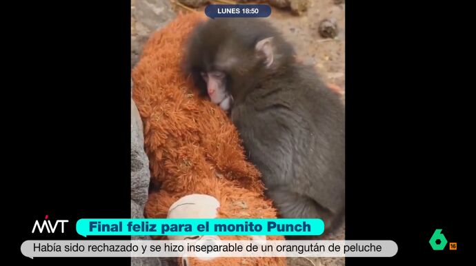 Más Vale Tarde analiza la historia de Punch, un macaco de un zoo japonés que, tras ser rechazado por su madre y el resto de la manada, encontró apoyo en un orangután de peluche. Ahora, parece que ha empezado a socializar con sus congéneres.