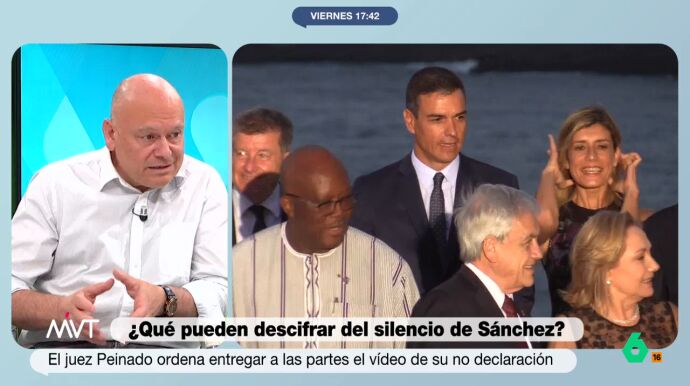El periodista Gabriel Sanz recuerda al juez del 'caso Begoña Gómez' que la decisión de Sánchez de no declarar "es un derecho constitucional" y asegura en este vídeo que "instar a las partes a sacar conclusiones de ese silencio es extraño".