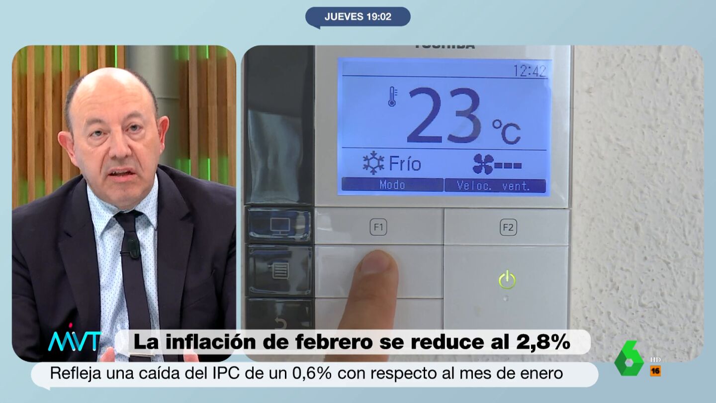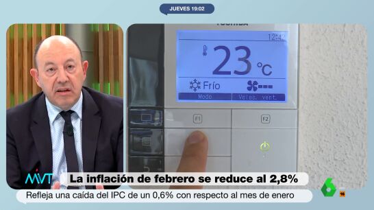 La inflación en febrero se ha situado en un 2,8%, el mejor dato desde agosto. Sin embargo, el economista ha asegurado que es "probable" que en marzo el IPC vuelva a subir unas décimas por la luz y el gas natural.