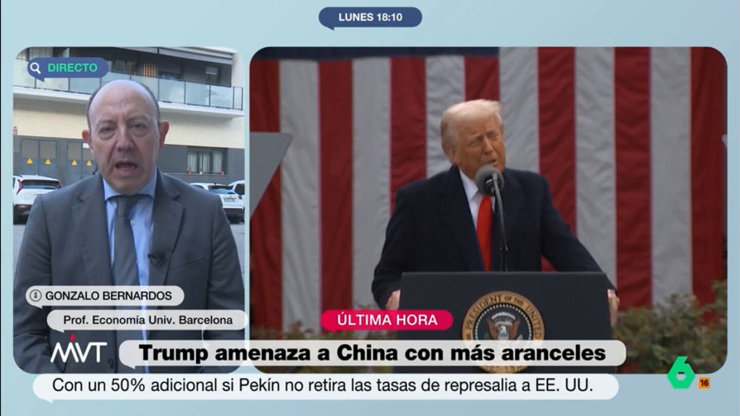 Más Vale Tarde conecta un día más con Gonzalo Bernardos para analizar la crisis en los mercados por las políticas económicas de Donald Trump, cuyo último capítulo es la amenaza de nuevos aranceles a China.