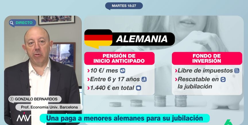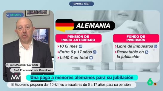 Gonzalo Bernardos analiza en este vídeo la decisión del Gobierno alemán de dar 10 euros mensuales a jóvenes de entre 6 y 18 años para que sirva de complemento a sus pensiones, pero con el que, según el economista, "poco se puede hacer".