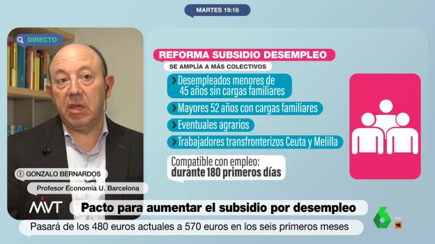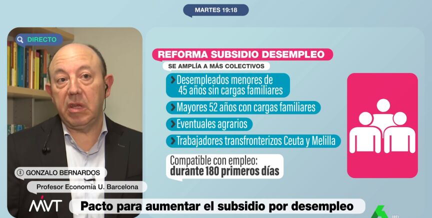 El economista ha asegurado que gracias a que este subsidio se puede compatibilizar con un empleo durante los primeros 180 días agilizará encontrar empleo: "Muchas veces lo que ocurría es que a uno le ofrecían un trabajo eventual y lo rechazaba para no perder el subsidio".