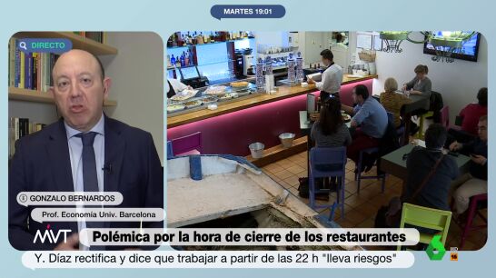 Más Vale Tarde conecta con Gonzalo Bernardos, que en el vídeo sobre estas líneas analiza la polémica de Yolanda Díaz sobre la hora de cierre de los restaurantes. En este sentido el economista opina que ha sido "un error importante, porque no todo lo que hace Europa está bien y lo que hacemos nosotros está mal".