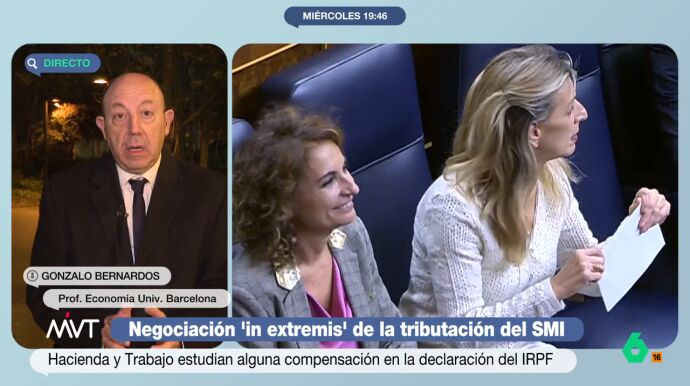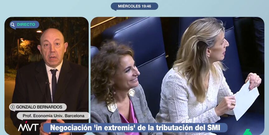 El experto también hace cuentas y explica que si la tributación del SMI afecta solo al 20% de los que lo cobran, "lo que deja de recaudar Hacienda son 162 millones de euros". Una cifra que, comparada con los más de 550.000 millones que se recaudan, "es prácticamente el azucarillo en un café": "¿Por eso dos ministras del Gobierno están a la greña?", se pregunta Bernardos, que asegura que esto es "inentendible".