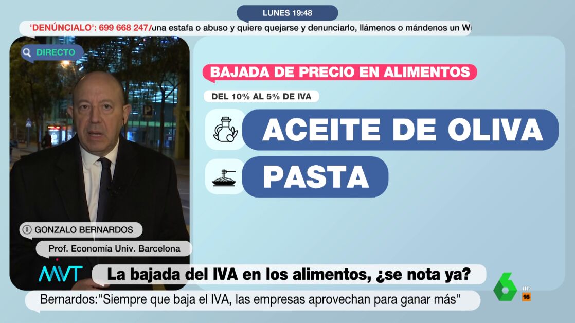 La rebaja del IVA en alimentos esenciales y en la pasta y el aceite no está causando consenso en las distintas partes implicadas, con los consumidores mostrando recelo por unas bajadas que no son excesivamente notables. Gonzalo Bernardos también se une a los escépticos, asegurando que la bajada de los productos no va a ir en consonancia con el IVA rebajado.