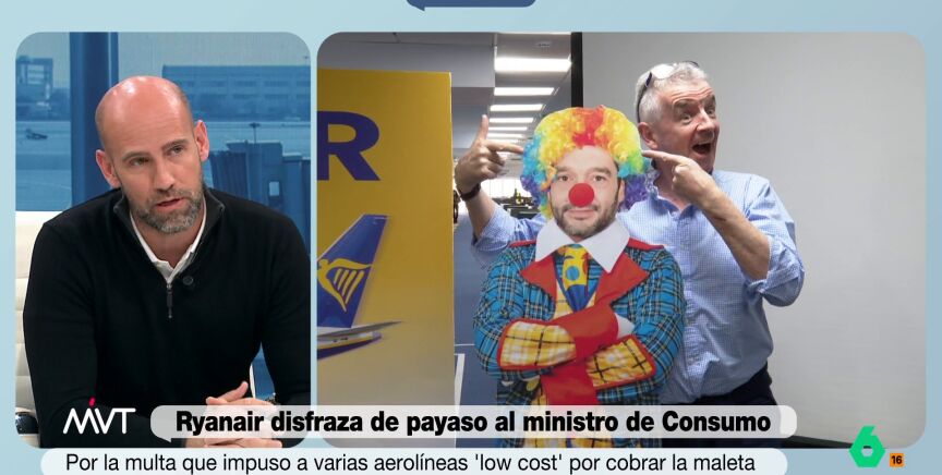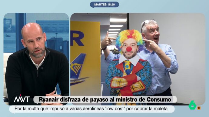 El colaborador de Más Vale Tarde ha criticado duramente la campaña en la que Ryanair viste a Pablo Bustinduy como un payaso y ha elogiado la determinación del ministro: "Ya era hora de que alguien hiciera algo ante estas maneras de volar".