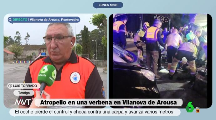 "Estaba en plena actuación de la orquesta y en un momento dado el cantante de la orquesta anunció por megafonía que se callara la carpa. Yo estaba a unos escasos metros de dónde ocurrió la cosa. Nos desplazamos y fuimos al punto y estaba el coche y un chico debajo, con cuatro o cinco heridos tirados en el suelo sangrando, chillando, llorando...", ha explicado.