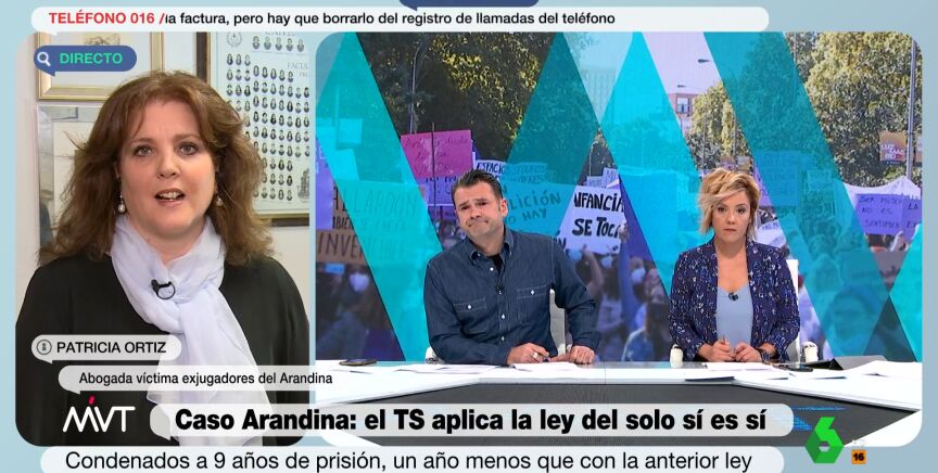 Patricia Ortiz reconoce estar "satisfecha a medias" por la revisión del caso Arandina, donde se ha elevado la pena a los condenados a nueve años de prisión que podrían haber sido diez en caso de no haber entrado en vigor la ley del 'Solo sí es sí'.