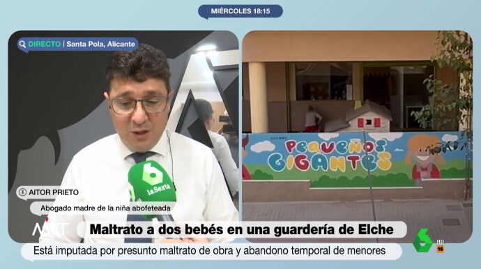 Más Vale Tarde entrevista a Aitor Prieto, el abogado de la familia de la bebé de 18 meses abofeteada en una guardería de Elche. Sobre la directora, detenida por un delito de maltrato, asegura que "nos interesa una pena que conlleve inhabilitación".