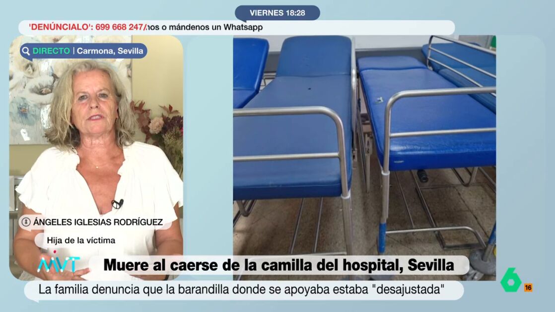 Según denuncia, aunque el trato del personal en todo momento ha sido bueno, en el hospital "todas las camillas están en muy mal estado" y cualquier persona "puede ingresar, estar en esa camilla y que ocurra exactamente lo mismo" que le ocurrió a su madre. Por eso reclama que se subsane esta deficiencia del material y que "las personas no tengan que estar ocho o nueve horas esperando a que llegue una ambulancia con su alta dada".