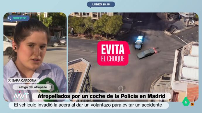 Respecto a los agentes que viajaban en el vehículo policial accidentado, Sara asegura que "se bajaron inmediatamente a ver al bebe y a la señora que estaba bajo el coche". Incluso, valora de forma positiva que "ellos también se debieron lastimar y ni se preocuparon por eso. Se bajaron del coche a ayudar a los atropellados", relata ante los micrófonos de laSexta la testigo.