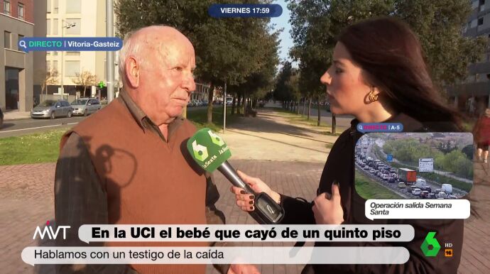 Habla un testigo que se encontró al bebé de 11 meses que se precipitó este jueves desde la ventana de un quinto piso en un edificio de Vitoria. Como cuenta en Más Vale Tarde, cuando él llegó ya había otras tres personas rodeando al bebé que yacía en el suelo.