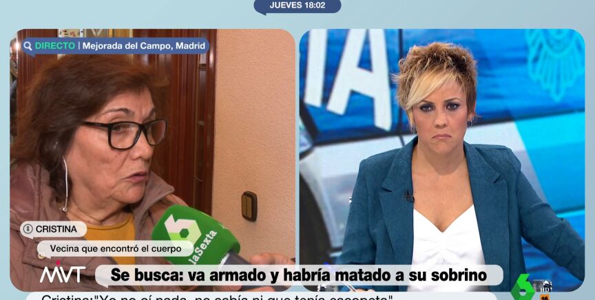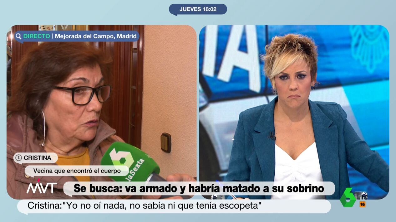 La Fuerzas de Seguridad están buscando a Javier, un hombre que, presuntamente, mató a su sobrino Sergio de un disparo en Mejorada del Campo. Javier Bastida ha podido charlar con Cristina, vecina "puerta con puerta" del supuesto asesino.