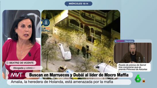 Beatriz de Vicente, por su parte, comenta en plató que de la 'Mocro Maffia' no solo importa el poder económico, sino "los peligrosos que son": "Llegaron a encargar la muerte de un periodista que les investigaba, tienen amenazados a jueces, dominan puertos como Amberes o Rotterdam y han cortado cabezas y las han expuesto", afirma la abogada, que añade que "no soy capaz de contestar cuáles son los motivos por los que está en libertad, pero es un escándalo".