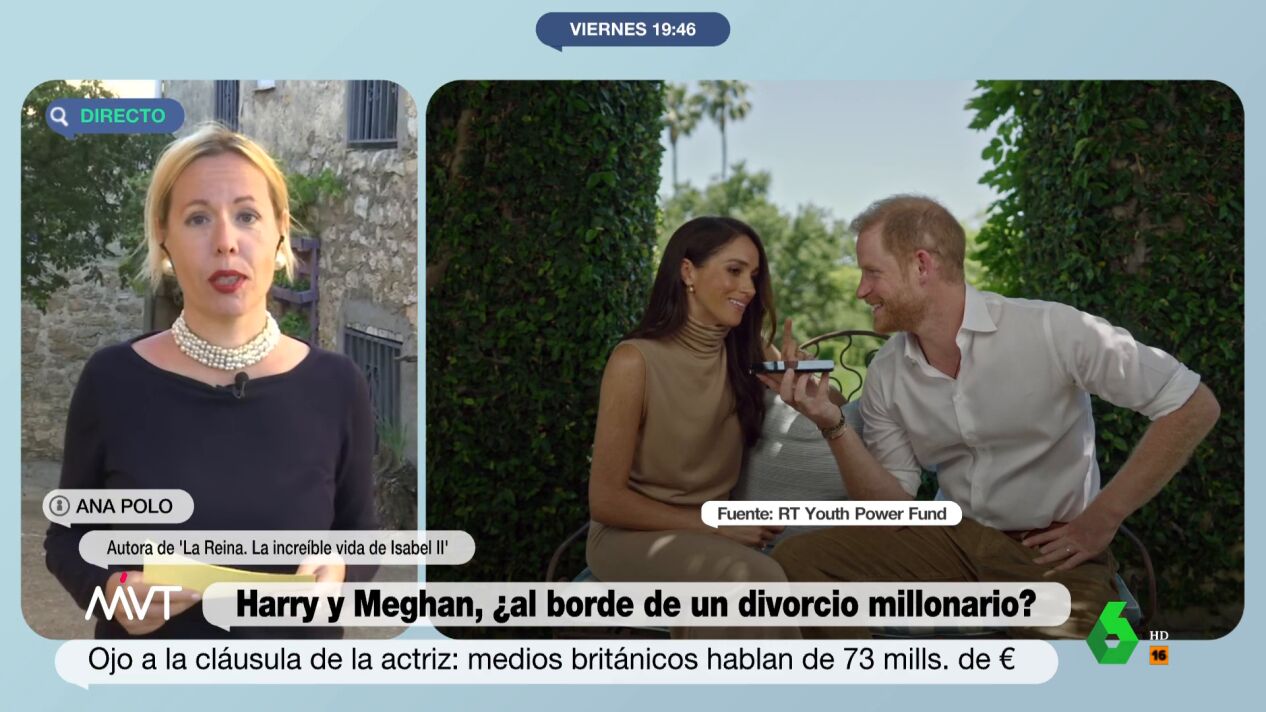 Pero, ¿por qué están en crisis? Según Ana Polo, los duques de Sussex "están pasando por un muy mal bache económico": "Se dijo en un primer momento que se habían quedado sin un duro después de salir de la familia real", señala la escritora, que apunta que "no les dejaron ni la seguridad" que "se calcula que podrían ser seis millones de euros", a lo que hay que sumar los gastos de su vivienda y que "llevan un tren de vida espectacular".