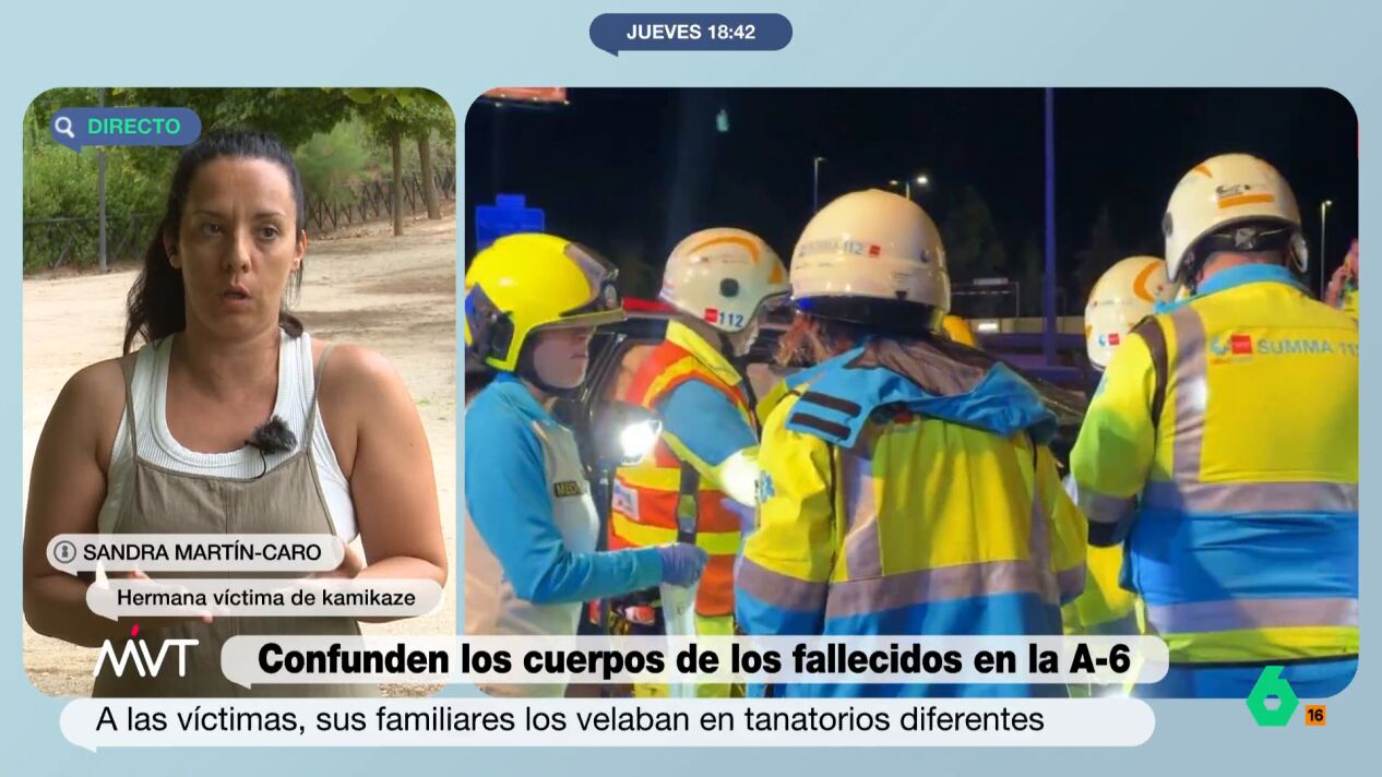 Sandra Martín-Caro, hermana del copiloto que falleció el pasado fin de semana por el kamikaze de la A-6, ha pedido en Más Vale Tarde "explicaciones" por haber confundido los cadáveres de las dos víctimas.