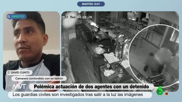 Cristina Pardo e Iñaki López hablan con David Cunto, el camarero agredido por dos agentes que pensaban que se trataba de un ladrón. Las imágenes del local muestran que los guardias civiles actuaron de forma muy violenta.