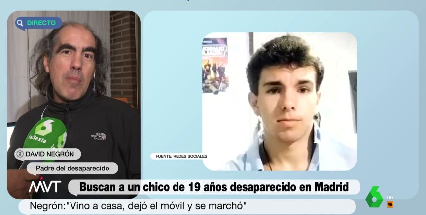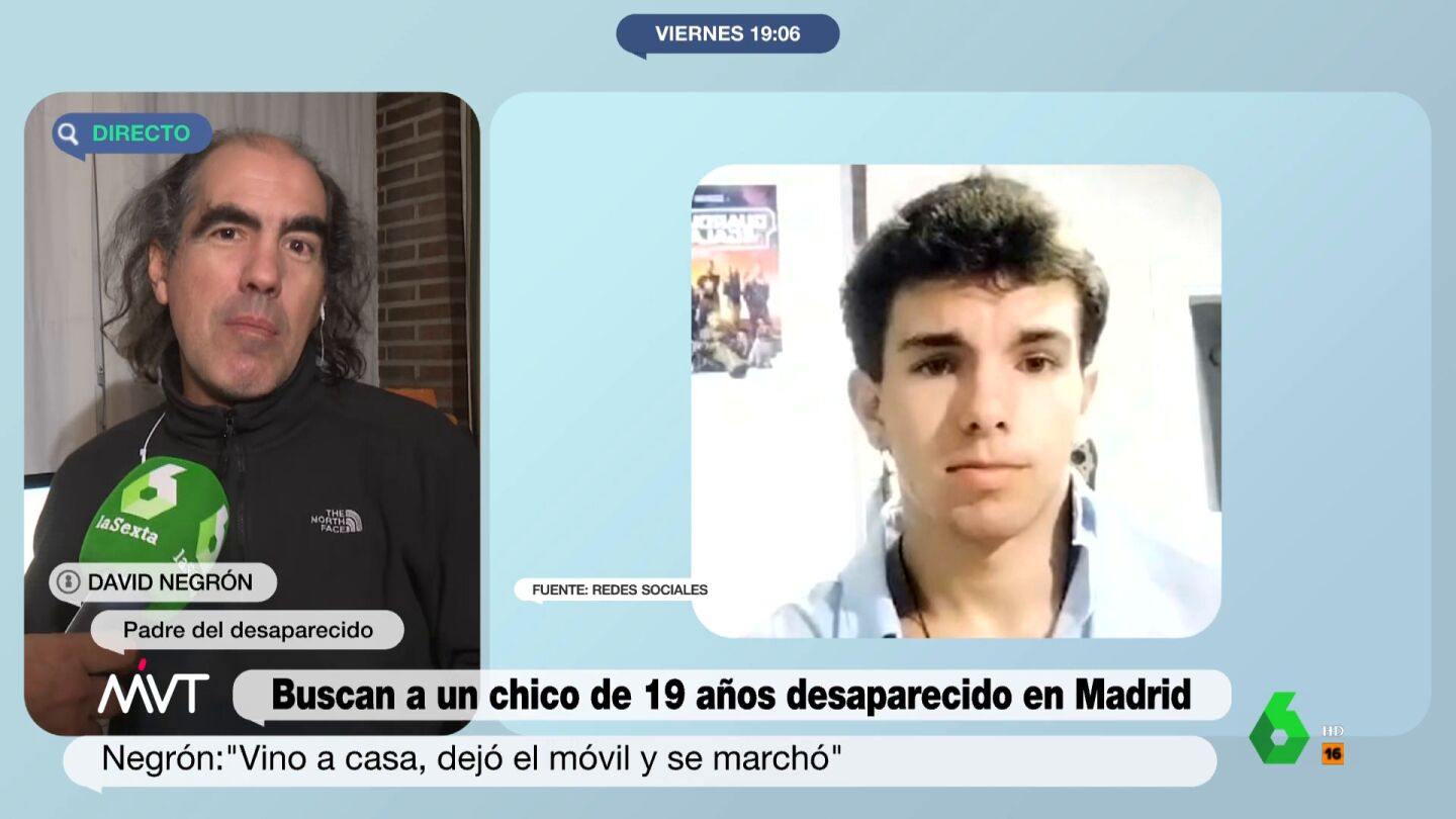 "Él tiene un pronto, como todos los chavales de su edad, pero nunca ha hecho una cosa así", ha recalcado en Más Vale Tarde el padre de Iago Negrón, el joven visto por última vez el miércoles en Pozuelo de Alarcón.