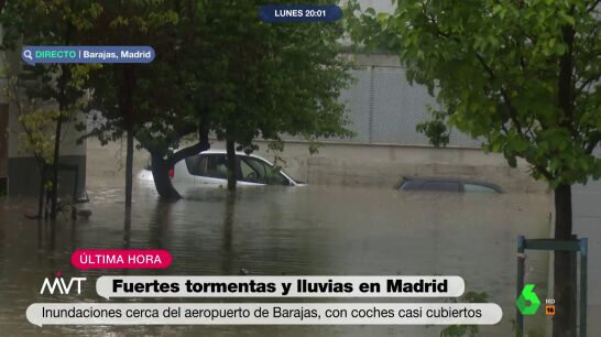 Las lluvias están dejando este lunes inundaciones en varios puntos de la capital. Una de las zonas más afectadas es la de Barajas, y de hecho algunos vuelos del Aeropuerto de Barajas podrán sufrir retrasos por estas tormentas.